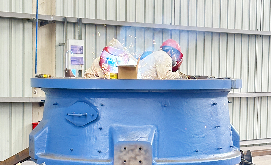 進料:礦石通過振動給料機均勻、連續(xù)地進入破碎機。